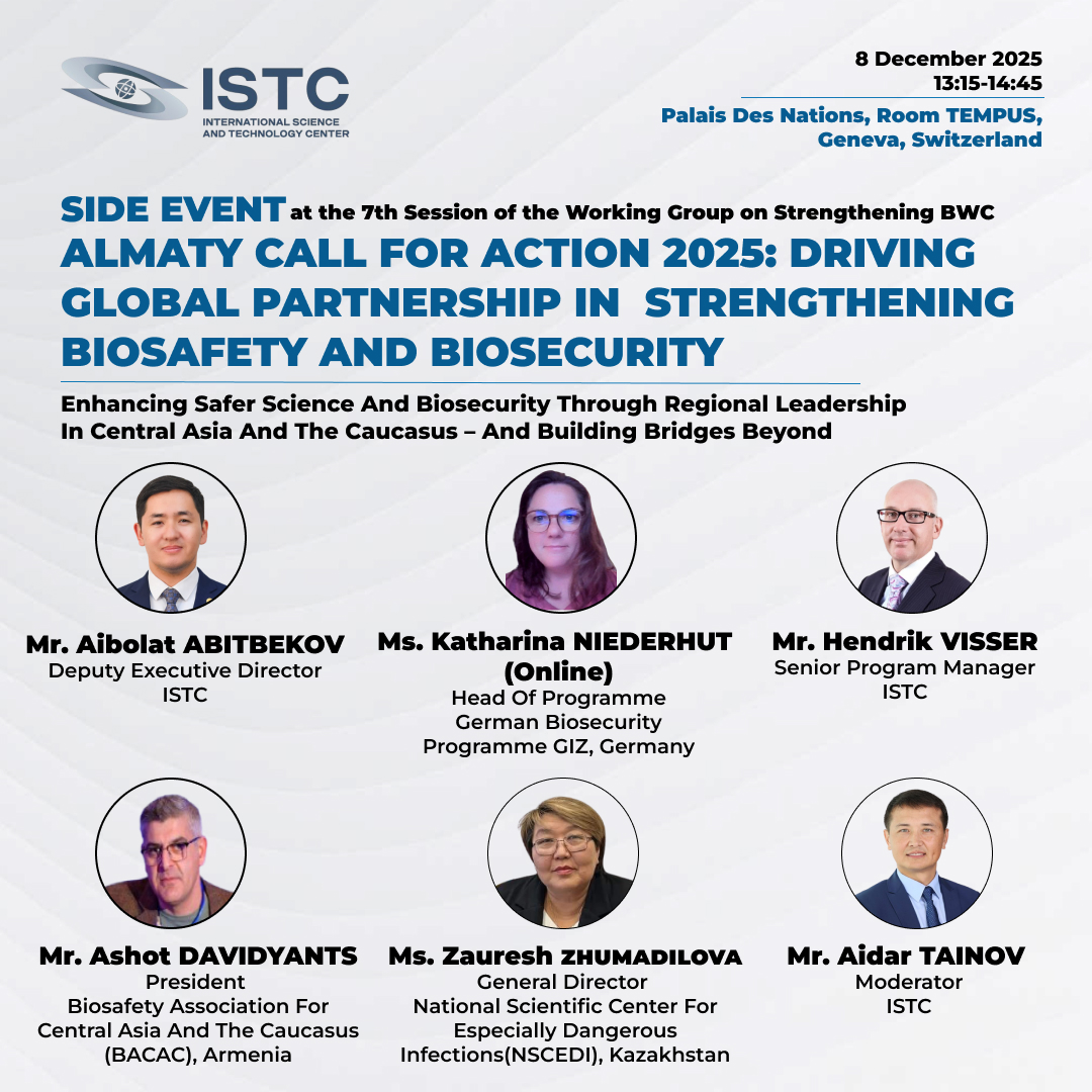 Almaty Call for Action 2025: Driving Global Partnership in Strengthening Biosafety and BiosecurityOrganizer: International Science and Technology Center (ISTC)